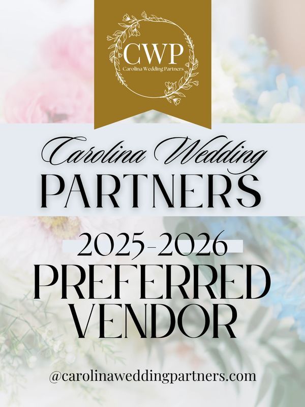 We are so thrilled to share that we have been a preferred vendor for Carolina Wedding Partners since 2024, among a few others. This recognition is a huge honor, and it means the world to us to be trusted by incredible clients and venues alike. Being a preferred vendor allows us to connect with more amazing people and create unforgettable experiences, all while doing what we love! Thank you to everyone who has been part of this journey, your support fuels our passion! Here's to many more fantastic collaborations and memories together. Cheers to Happiest Hour being your top choice!